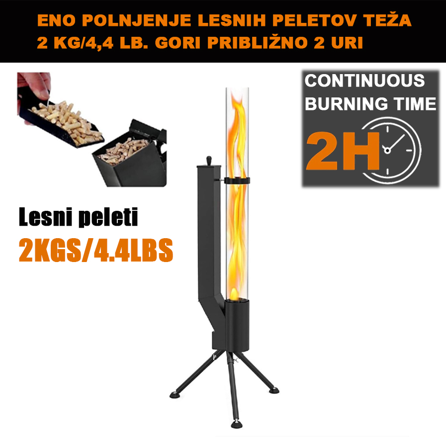 SI_Lesni peleti, vrtni raketni izstreljevalec, peč za ogrevanje